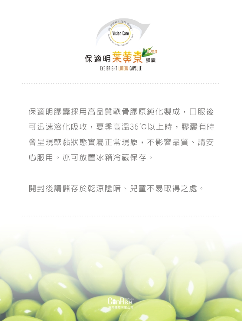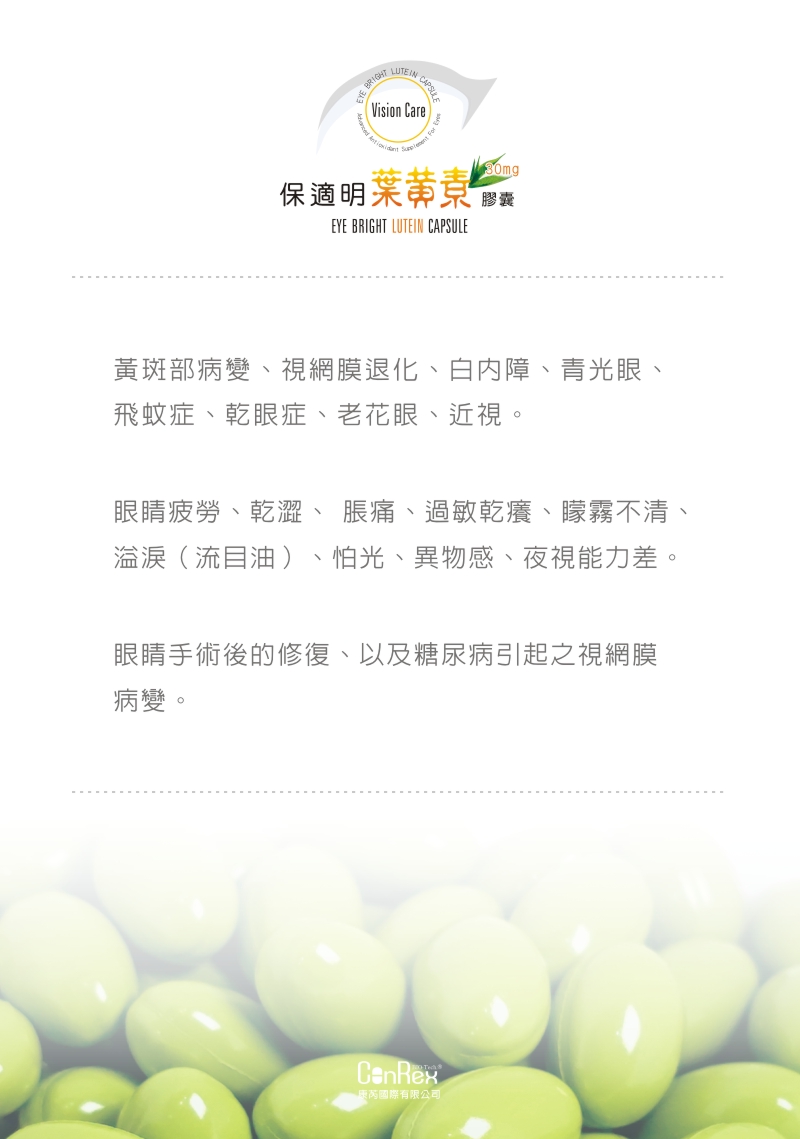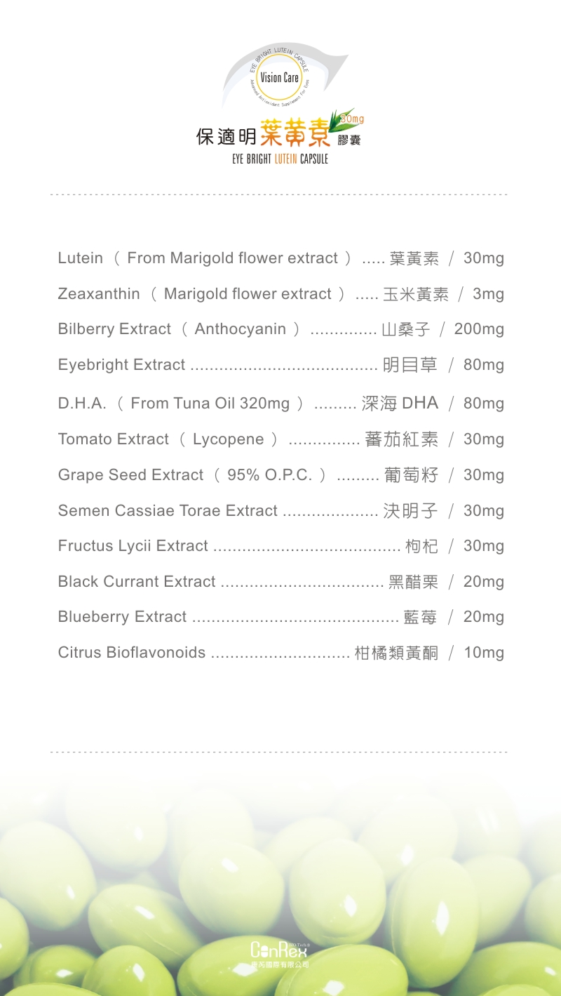 • 含高單位葉黃素及多種豐富的成分,是最完整的眼睛專用維他命