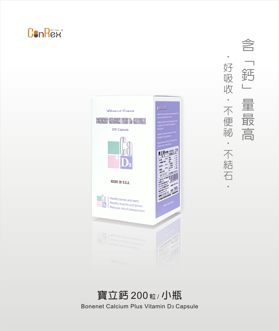 含可吸收之鈣元素每粒高達300毫克,是所有品牌鈣質含量最高者。